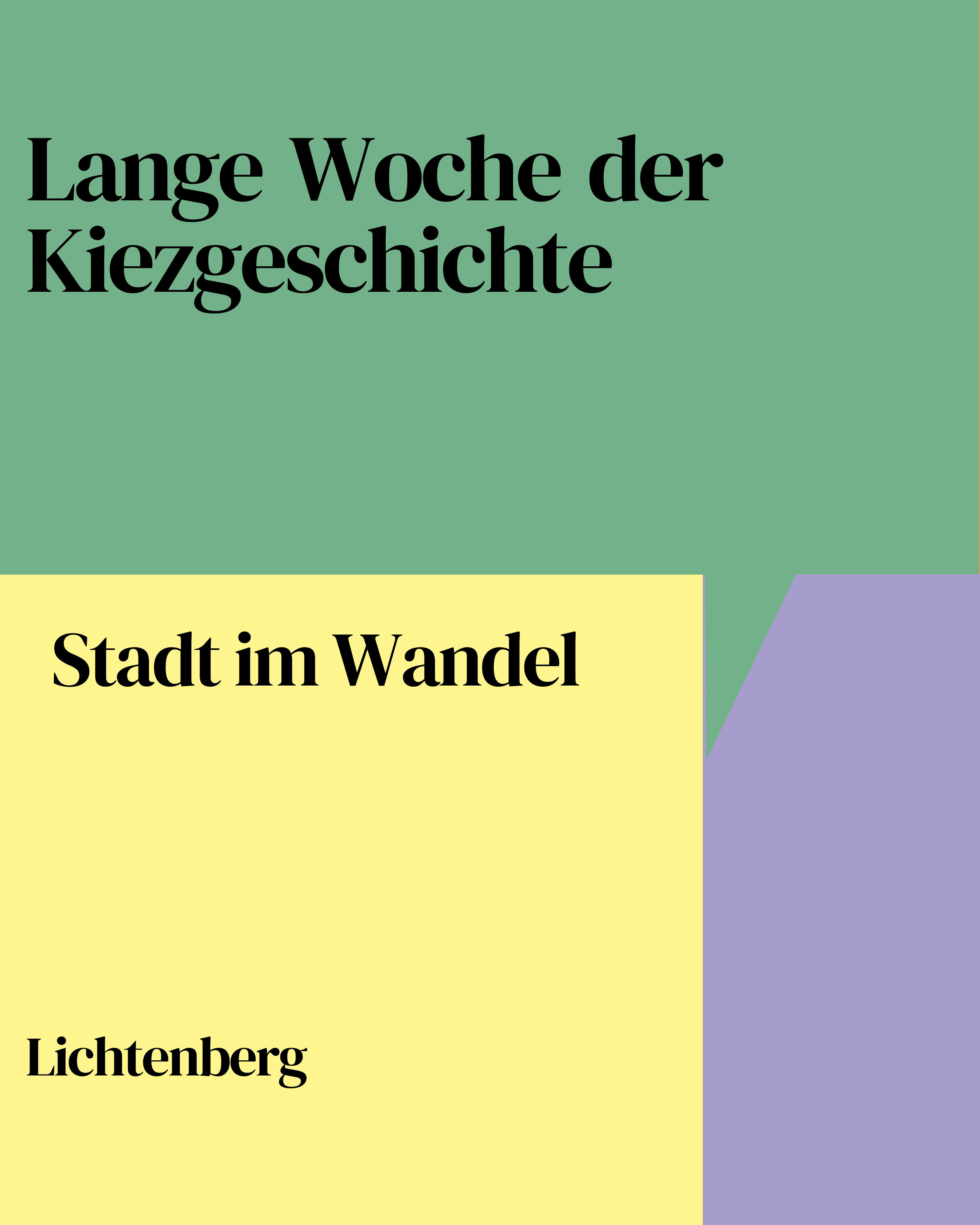 Die 12 Berliner Bezirksmuseen führen unter dem Motto „Geschichte findet Stadt" auch in diesem Jahr wieder eine "Lange Woche der Kiezgeschichte" durch. Das Museum Lichtenberg bietet 3 Führungen und Rundgänge an.