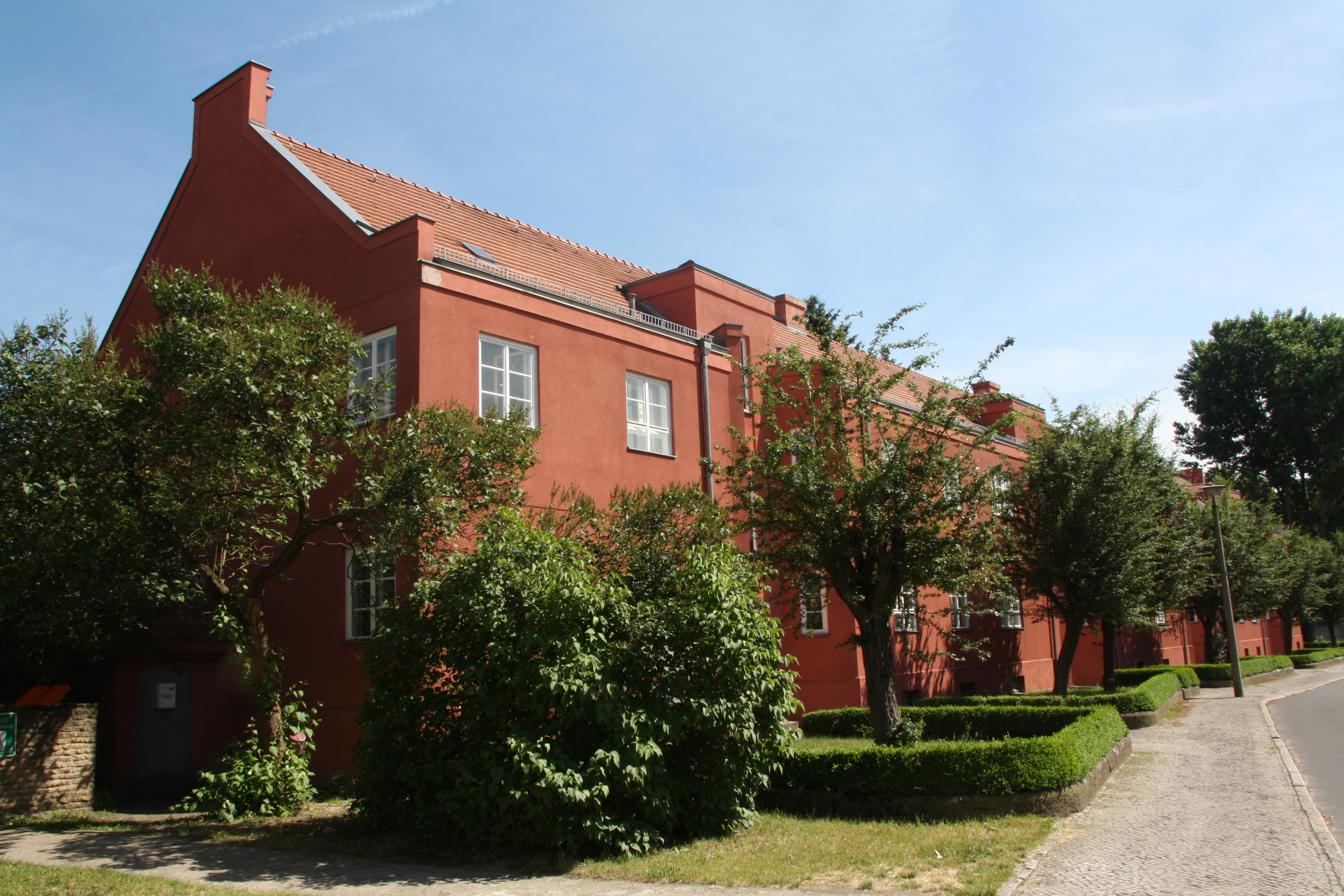 Nach einer Idee von Wilhelm Primke und PlĂ€nen des damaligen Berliner Stadtbaurats Martin Wagner wurde 1926 und 1930 die erste deutsche Plattenbausiedlung errichtet. Die Architekten Goettel und Primke setzen ihn um. Bauherr ist die „GemeinnĂŒtzige Reichsbundkriegersiedlung GmbH“, die billige und hygienische Kleinwohnungen fĂŒr Kriegsteilnehmer und Hinterbliebene errichten will. Es entsteht die „Kriegerheimsiedlung“. Ziel war es, den Wohnungsbau zu straffen und rationeller, schneller und kostengĂŒnstiger zu bauen. In den zwei- und dreigeschossigen HĂ€usern entstanden ursprĂŒnglich 138 Wohnungen, von denen im Zweiten Weltkrieg 20 zerstört wurden. Die Siedlung blieb vorerst ein Unikat im BemĂŒhen des Wohnungsbaus mit sozialen Zielstellungen. Die Betonplatten waren zu schwer, der Kran war zu unbeweglich und die SeriengrĂ¶ĂŸe war bei dieser Siedlung zu klein. Die Kritik am industriellen Bauen setzte ein, nicht zuletzt, weil die Gleichheit der HĂ€user als "unertrĂ€glich" empfunden wurde.